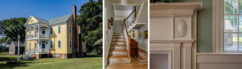 North Carolina did not see the adoption of such highly styled houses as quickly as Virginia and South Carolina. Here, classically inspired architecture slowly replaced medieval and asymmetrical forms beginning in the 1750s. According to architectural historian Catherine Bishir, as the “gentry class grew with the influx of educated and ambitious newcomers in the late colonial period, participation in the growing genteel culture of classicism grew stronger.” The style remained popular through the end of the eighteenth century until it was replaced in popularity by the Federal style around 1800. Today, several properties protected by Preservation North Carolina (PNC) offer insights into Georgian architecture in our state.