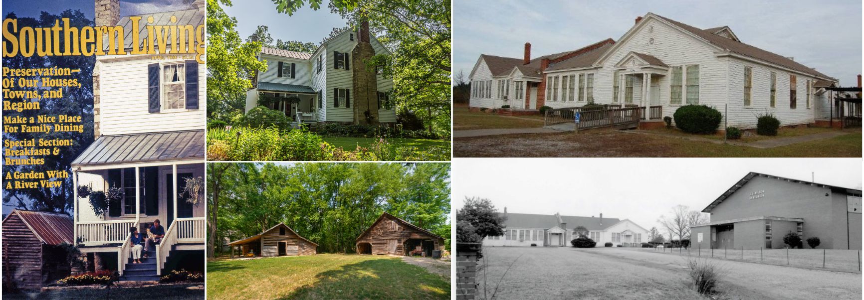 Woodleaf Plantation (1820): Protected by PNC since 1981, the Massenburg Plantation (known as Woodleaf) is a remarkably intact plantation house and collection of outbuildings. Massenburg’s detailed journals, now housed in the Southern Historical Collection at UNC-Chapel Hill, chronicle the farm’s history, including its enslaved laborers. Built with labor from 46 enslaved people by 1860, the plantation was a major producer of cotton and corn. It was listed on the National Register of Historic Places in 1975 with a boundary expansion in 2000. The property has been fully restored by owners Bill Lord and Sue Guerrant and was featured in the April 1986 issue of Southern Living.