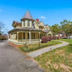 The two-story 1898 Neo-Colonial/Queen Anne-style Fox-Ingold House, known locally as the “Hospitality House,” is ready to be a showcase once again. The inviting wraparound front porch with turned posts and balustrade, octagonal tower, and sawn work detailing make this home stand out. The interior features five bedrooms and four bathrooms, stained glass windows, nine unique–several that are exquisite–mantels, hand carved newel posts and turned balustrades, original hardwood flooring, original wainscot, built-ins, and more.