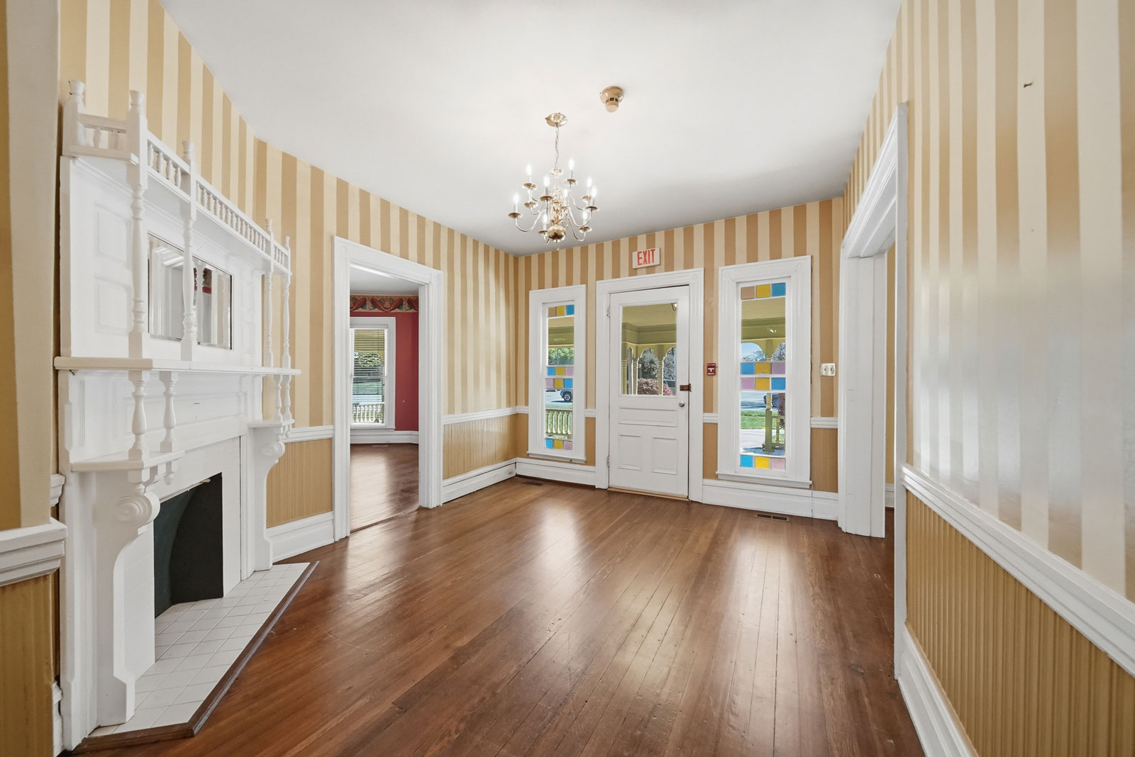 The two-story 1898 Neo-Colonial/Queen Anne-style Fox-Ingold House, known locally as the “Hospitality House,” is ready to be a showcase once again. The inviting wraparound front porch with turned posts and balustrade, octagonal tower, and sawn work detailing make this home stand out. The interior features five bedrooms and four bathrooms, stained glass windows, nine unique–several that are exquisite–mantels, hand carved newel posts and turned balustrades, original hardwood flooring, original wainscot, built-ins, and more.